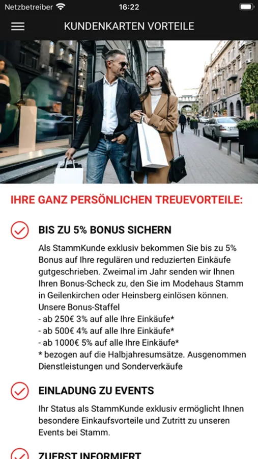Mit der Stamm App haben Sie alle Vorteile von Herrenmoden Stamm auf Ihrem Smartphone immer dabei - und einige Mehrwerte zusätzlich.