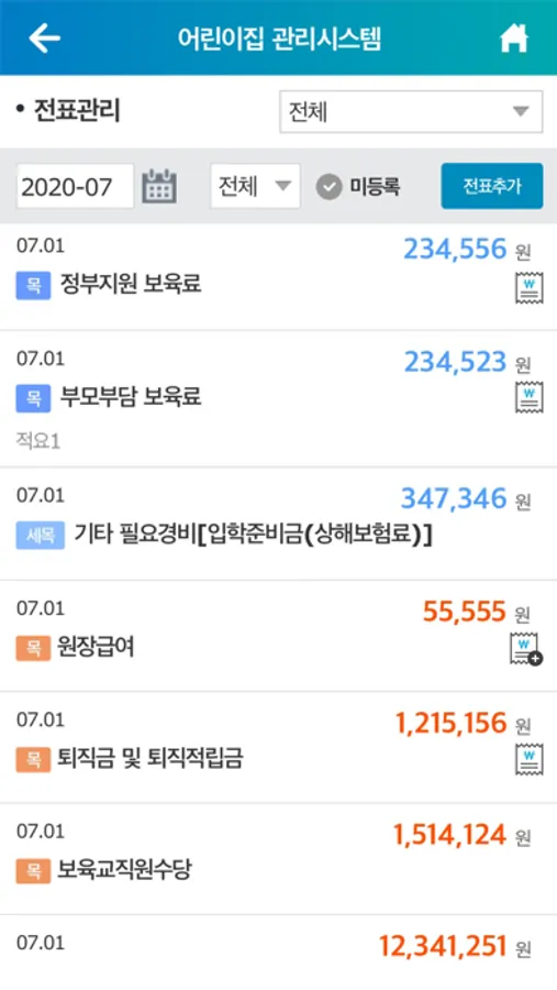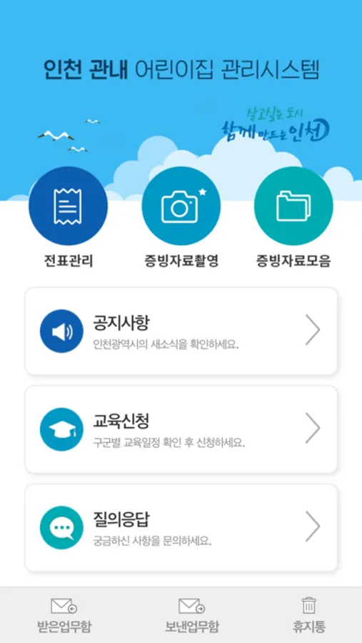 인천 관내 어린이집의 관리시스템 웹 화면과 연동되어 모바일에서 손쉽고 편리하게 회계 업무를 수행하도록 구현한 어플입니다.