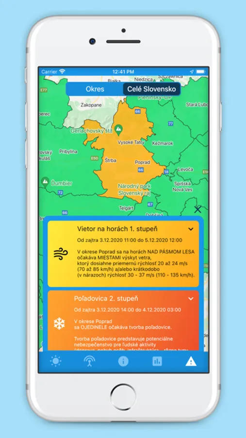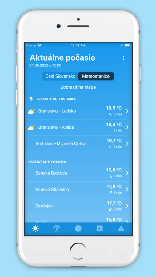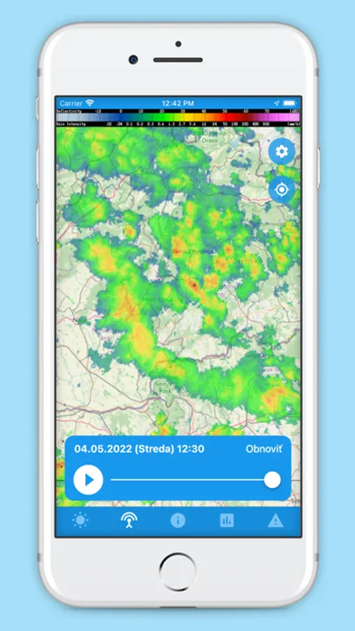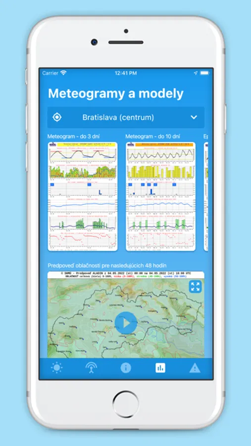 Pred nahlásením chyby prosím skontrolujte stránku SHMÚ, ak sa informácia nezobrazuje korektne tam (výpadky radarov, modelu Aladin), nebude sa zobrazovať ani v rámci aplikácie.