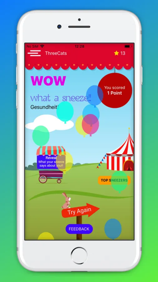 Sneeze-O-Rama is a fun, easy game that lets you try and beat modern AI technology by tricking the app with your sneeze!