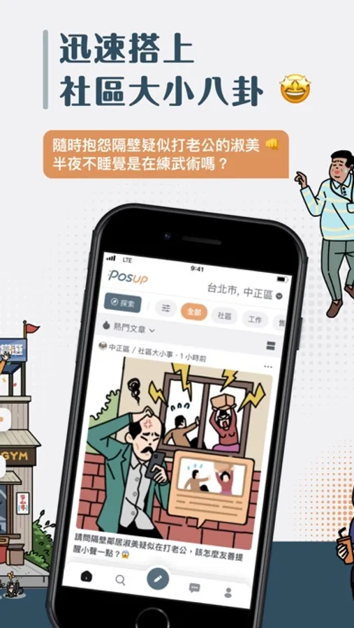 透過Posup社區布告欄,你可以知道你家巷口又多開了一間老爹牛肉麵,也可以隨意瞄到樓下的洪太太想要找多人運動好夥伴。在這裡,不管你是電影迷、房東、美食家、運動粉絲、電玩咖,都能在你的社區結界裡找到各式小道消息,結識附近有趣的緣分,豐富你的社區生活!