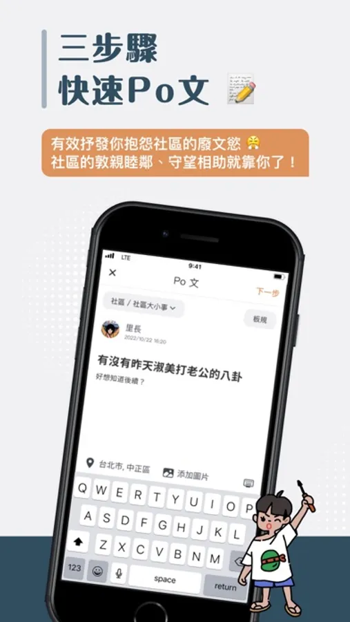 Posup是一款全新型態的社區消息張貼APP,可以讓你在自己的社區發布各類的小道消息,讓我們把你的大聲公貼文張貼在我們附近的實體布告欄,再加上在Posup的APP平台內散播,即便是極小的個人消息,都可以讓您社區內的所有里民看到!