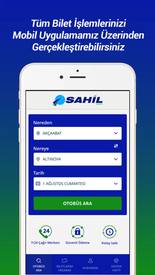 Sahil Seyahat'in şehirler arası ulaşım biletlerinin satılmasını sağlayan bir iPhone uygulamasıdır.