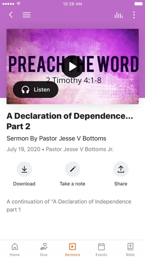 Our church app provides information on our church and guidance for your spiritual growth. You can choose to listen to sermons, give you prayer request, find information on our upcoming event, or give online. It's here to be a blessing to you.