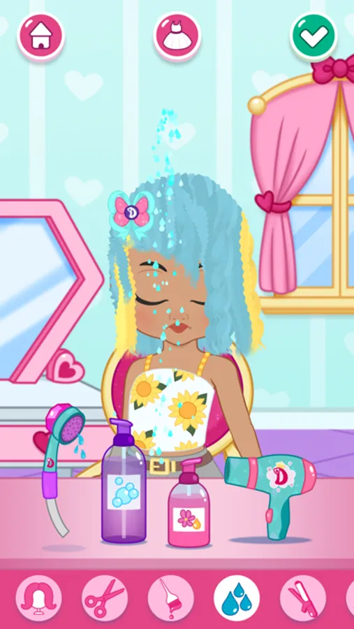 Don’t forget to adopt and pamper Diana’s favorite pets! Select which pet to wash and groom, cut its hair and add flair, choosing from fun accessories like a bowtie, tiara and more.