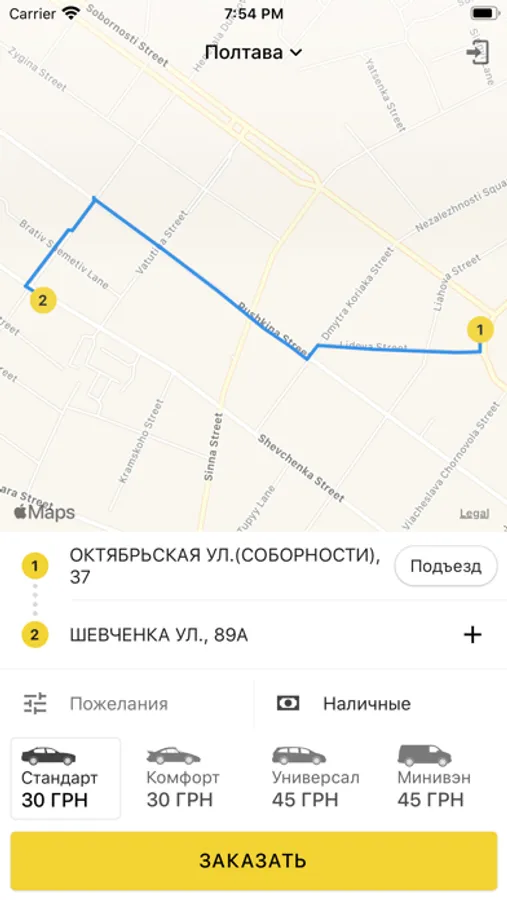 Заказать такси можно в городах Полтава, Сумы и Конотоп.
