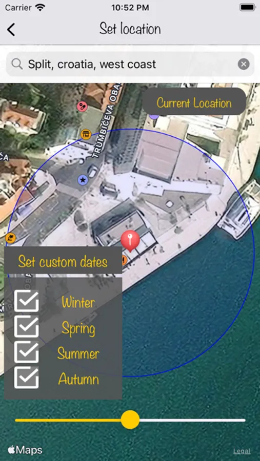– There are 4 filters, one for each season (summer, winter, spring or autumn). You can see during winter how some place (street, square, restaurant, club etc.) looks in the summer. There is also a filter by custom dates for more precise search.