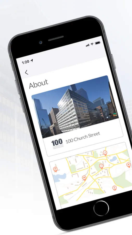 This application is intended for employees that work in 100 Church Street and their visitors. Important information about the building can be found on the dashboard, which dynamically changes throughout the day. The app allows employees frictionless access into the property and will enable them to invite guests to the property as well. Additional modules are available including, amenity reservations, events, community information, etc.