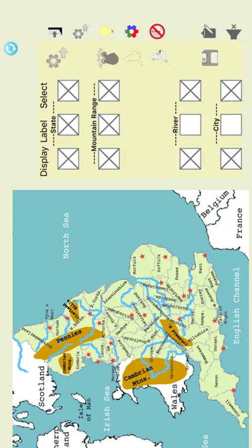 This app is an interactive map of the geography of England. Can study the different features of the country. Also a Quiz mode to test your knowledge