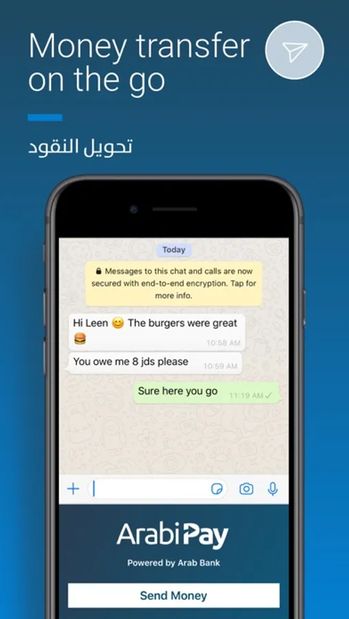 Arabi Pay introduces a shortcut to the users’ keyboards, granting them a seamless payment transfer experience like no other. Arabi Pay provides instant access to Arab Bank’s money transfer service easily within any social/messaging app.