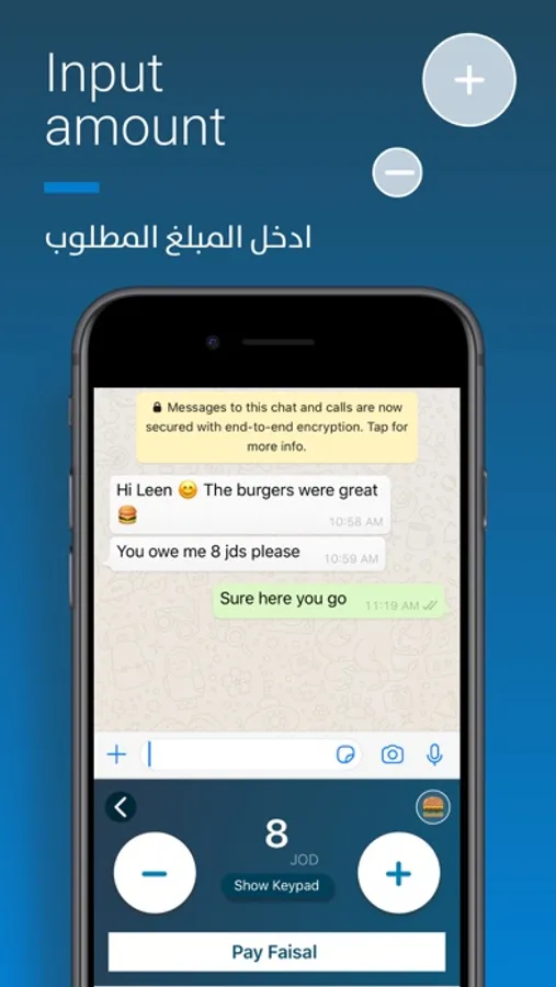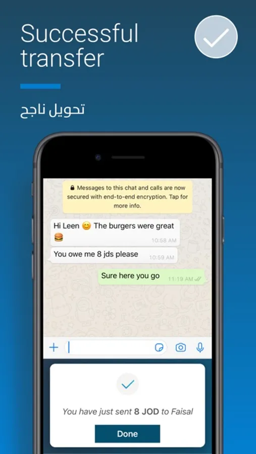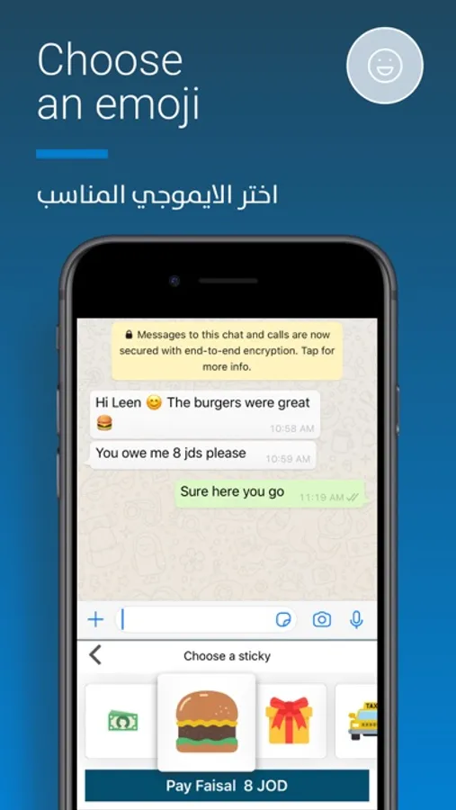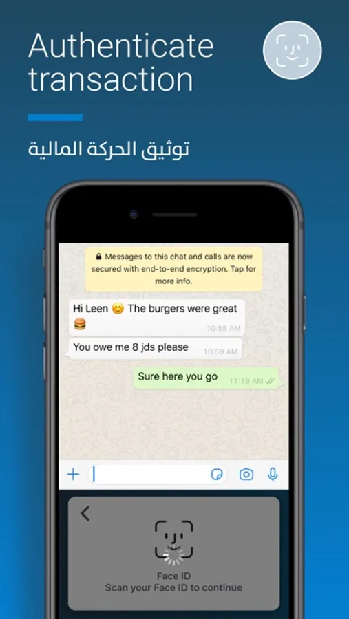 Forget the hassle of switching from app to app – just tap Arabi Pay on your keyboard, select a contact, input an amount, and emoji to describe the payment, and authenticate the transaction; all in one place. Funds are then instantly transferred to the receiver’s bank account.