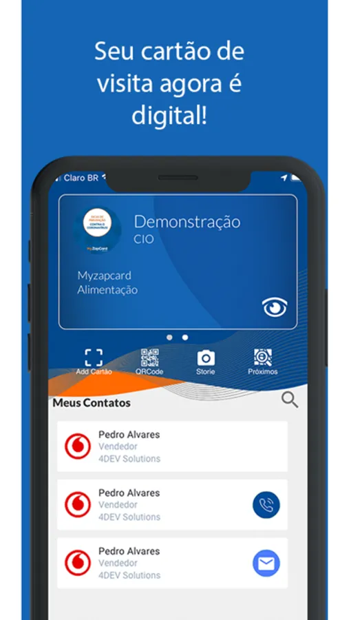 Facilmente compartilhável: Redes Sociais e QR Code para você compartilhar seus contatos de maneira rápida, simples e funcional.