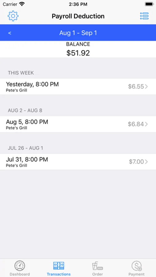 • View actual charges by cycle, including payroll deduction and meal plan accounts