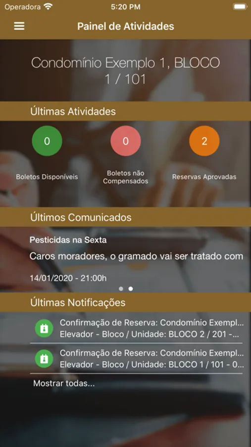 Visualizar cobranças em aberto da sua unidade e obter 2ª via de boletos (com recálculo automático de multas e juros);
