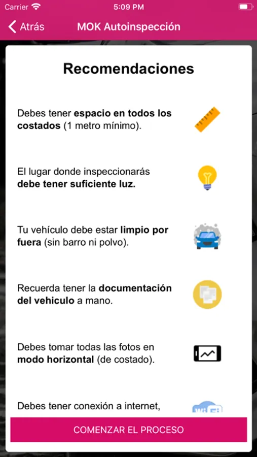 Esta aplicación permite a los usuarios realizar su propia inspección de vehículo durante el proceso de evaluación de seguro, de esa manera evita la coordinación de un inspector en terreno.