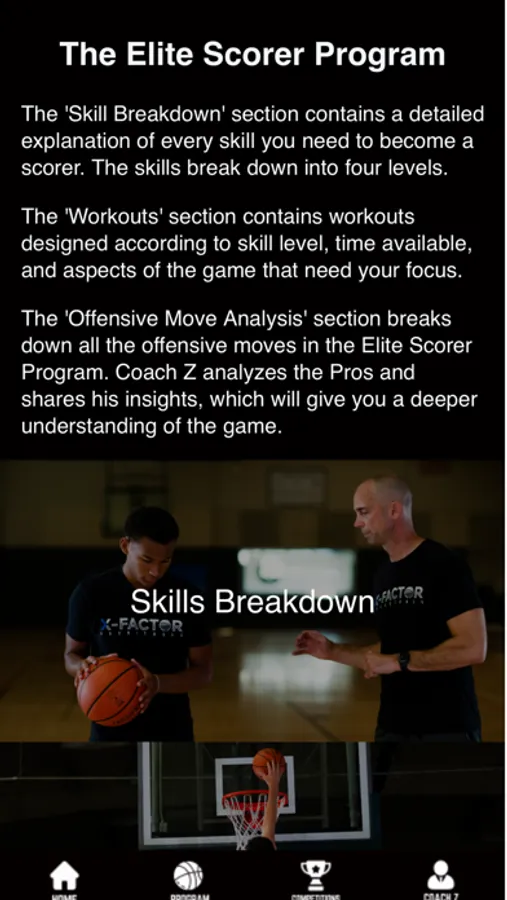 The X-Factor App provides a roadmap to becoming an elite scorer. Whether you're a beginner or well-advanced in your skills the app provides a step-by-step guide to help anyone reach the elite level.