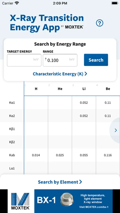 Welcome to the Moxtek X-ray Transition Energy App! We’ve seen high interest in the hard-copy version look-up chart we’ve shared in the past and thought it was time to move it into a convenient app you can have with you anywhere you are.