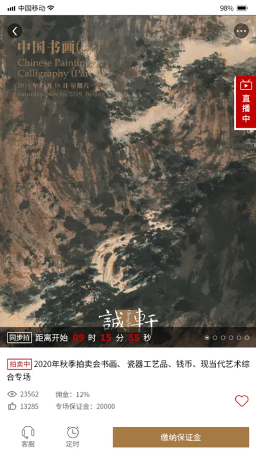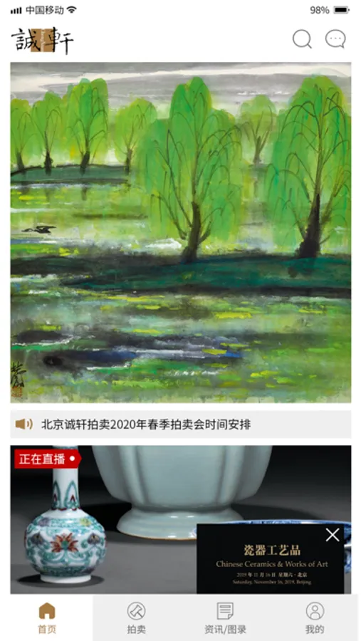 使用此APP可以了解北京诚轩拍卖有限公司最新拍卖资讯及参与网络实时竞投。
