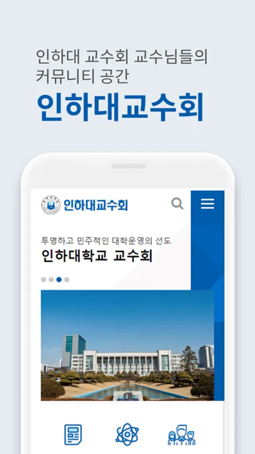 인하대학교 교수회는 회원 교수님들의 소통의 광장 및 다양한 정보 공유를 위한 앱을 만들었습니다.