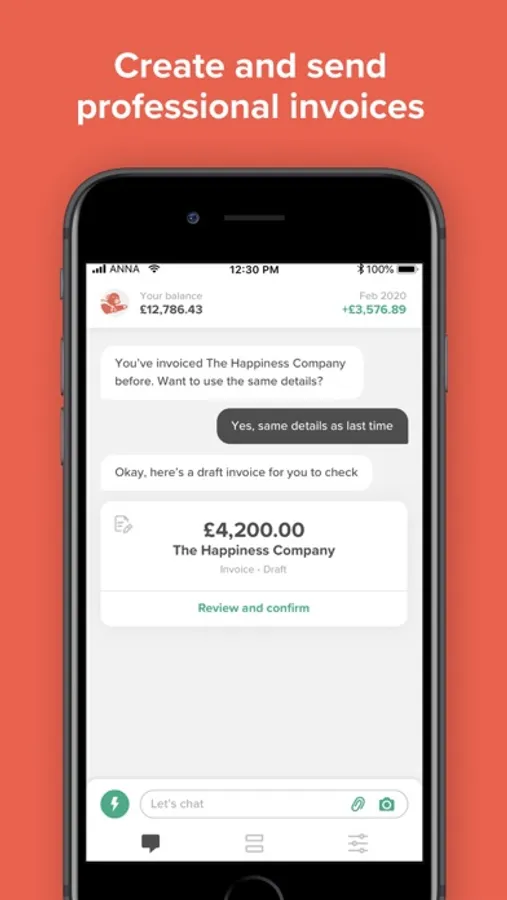 • Easy invoice maker – with ANNA's simple invoice template you can create and send personalised, professional-looking invoices and even chase them automatically