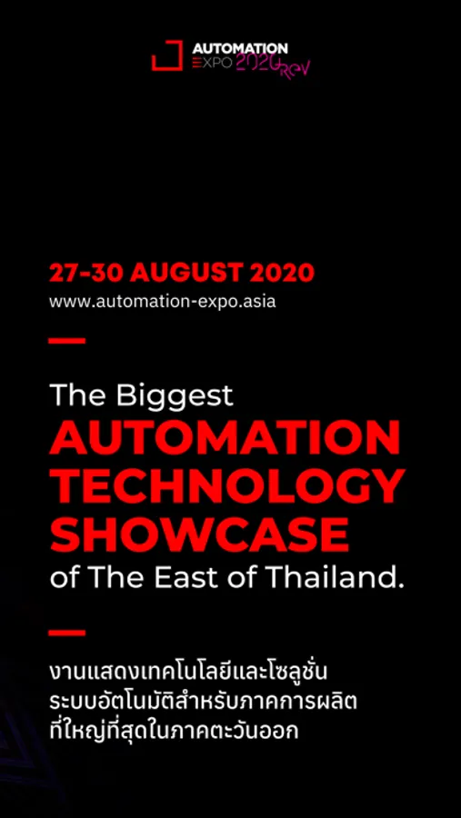 AUTOMATION EXPO 2020 งานแสดงเทคโนโลยีและโซลูชั่นระบบอัตโนมัติสำหรับภาคการผลิตที่ใหญ่ที่สุดในภาคตะวันออก ที่รวบรวมเทคโนโลยีและนวัตกรรมสำหรับระบบอัตโนมัติไว้อย่างครบวงจร