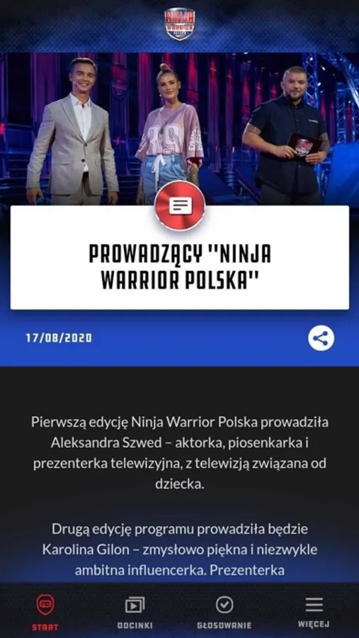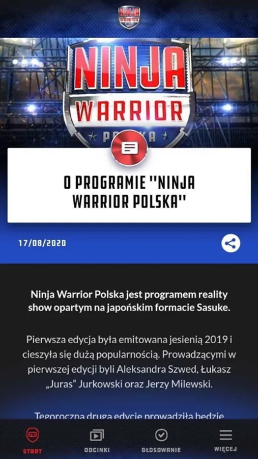Aplikacja będzie doskonałym uzupełnieniem programu. Dzięki niej będzie można bliżej poznać uczestników programu, obejrzeć nieemitowane, unikalne materiały wideo. W konkursach użytkownicy będą mogli wygrywać gadżety związane z programem. Będą typowania i statystyki oraz sondy i quizy związane z uczestnikami programu. To wszystko znajdziecie w bezpłatnej aplikacji Ninja Warrior Polska!