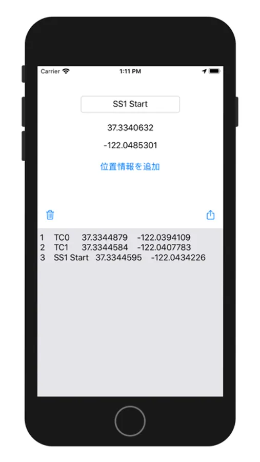 訪問した場所に任意の名前をつけて位置情報を記録し、タブ区切りテキスト形式で書き出せるシンプルなアプリです。