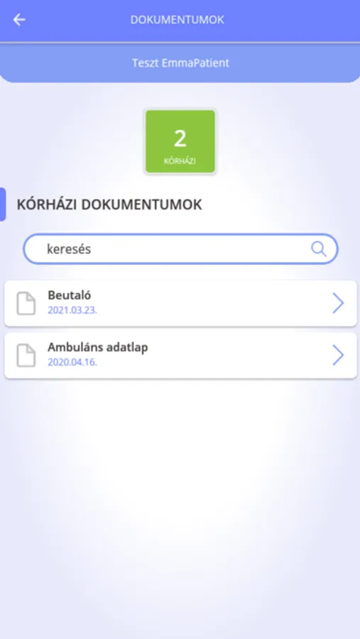 Az EMMA Patient mobilalkalmazás az EMMA HIS rendszert használó kórházak pácienseinek nyújt elsősorban adminisztrációs és információs funkciókat. Ezen funkciók segítségével a felhasználó saját magának, valamint a regisztrált hozzátartozóinak tud időpontot foglalni az elérhető járóbeteg rendeléseken. Nyomon követheti a saját és hozzátartozói időpont-foglalásait. Megtekintheti a saját és hozzátartozói kórházi dokumentumait.