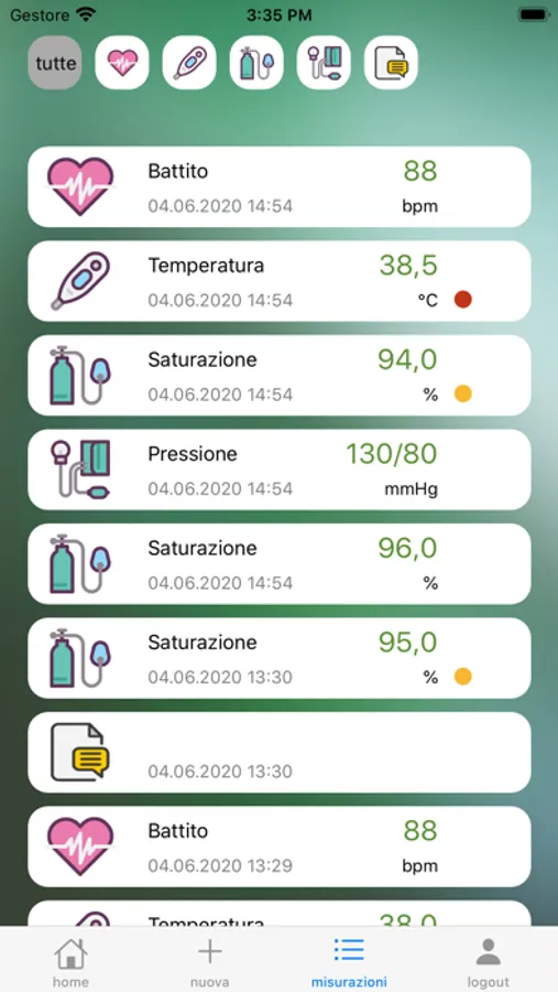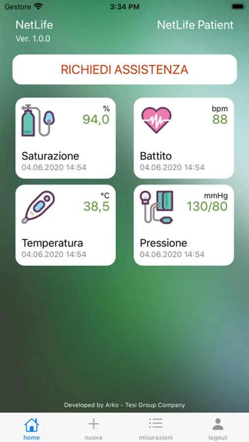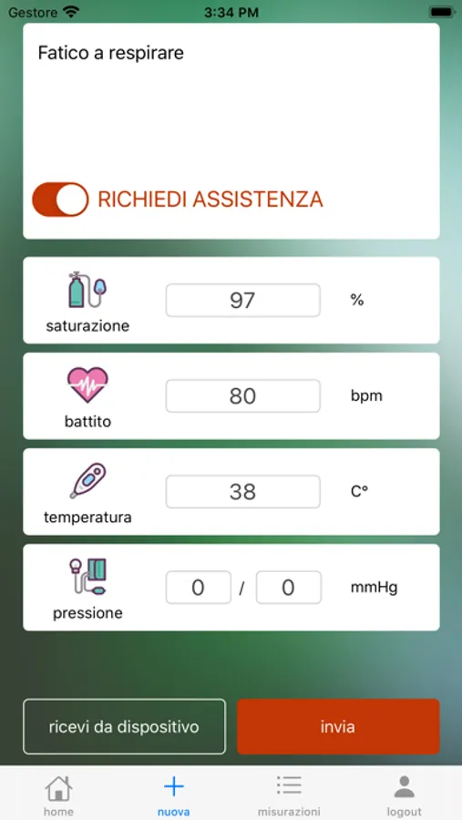 L'applicazione consente di inserire in tempo reale i risultati dei parametri clinici (pressione arteriosa, glicemia, temperatura, saturimetria, battito cardiaco, peso corporeo, ecc.) manualmente o acquisendoli automaticamente dalla strumentazione collegata via Bluetooth.