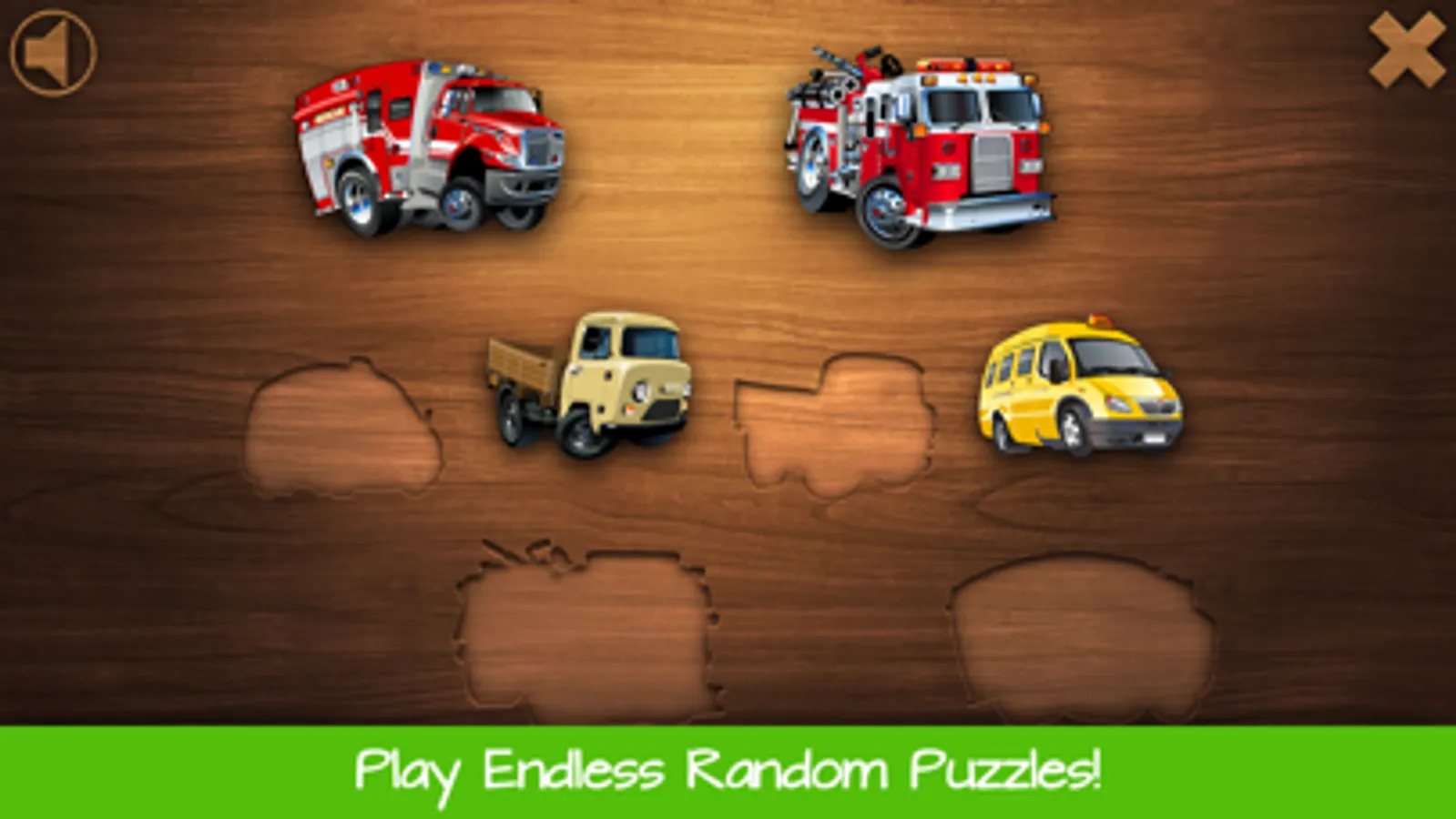 Polished wooden puzzle experience for toddlers who like cars, trucks, and motorcycles!
