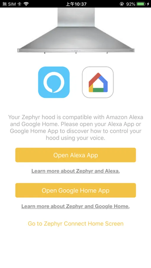 Control your Zephyr range hood remotely using the Zephyr Connect app and seamlessly integrate it with your Amazon Alexa or Google Home smart speaker.