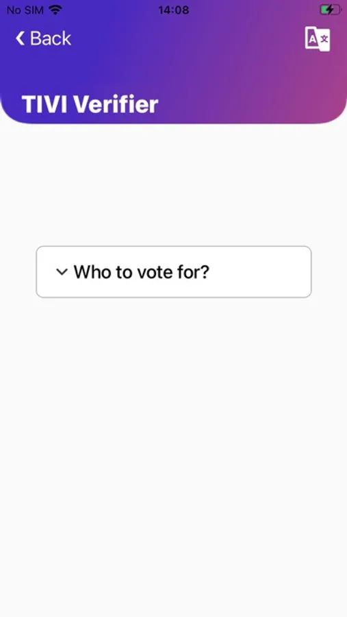 TIVI Verifer uses a device’s camera when you ask it to capture information about the vote encoded in the QR-code by the voting application. The app uses this information to download the i-vote from the online system for the purpose of analysing the received vote. The analysis is performed within the device and the results are presented to you as the voter and authorised user of the device, providing you with an assurance that your vote was correctly cast by the voting application and received by the online voting platform.