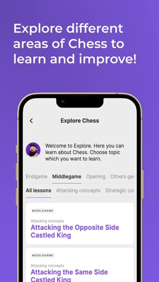 Discover a world of tactical chess content, prepared by Grandmasters, in the Explore section of Aimchess. Learn everything from basic checkmates, to high level theoretical concepts. With interactive tutorials and exercises, you can make sure the ideas stick!