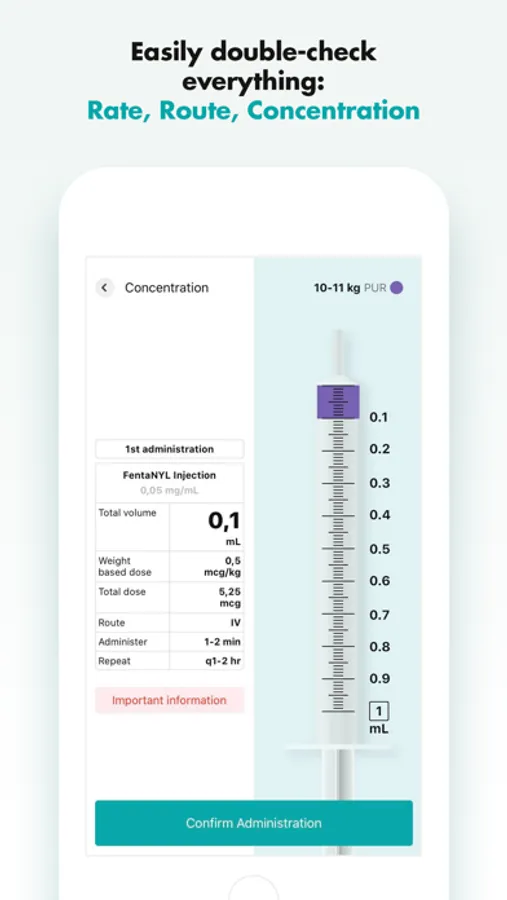 The Certa Dose app allows you to go through the process of medication administration in less than 60 seconds with a visual representation of everything that you do. You will be able to estimate weight-based dose using multiple options, choose the right syringe, visualize the correct volume of the medication concentration and document sessions seamlessly.