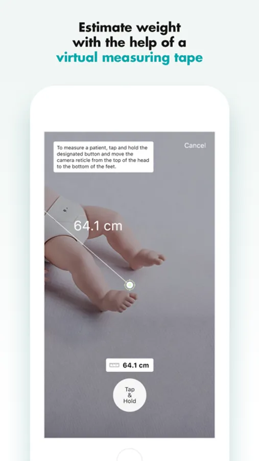 - Virtual pediatric measuring tape to assist in obtaining the length of the patient
