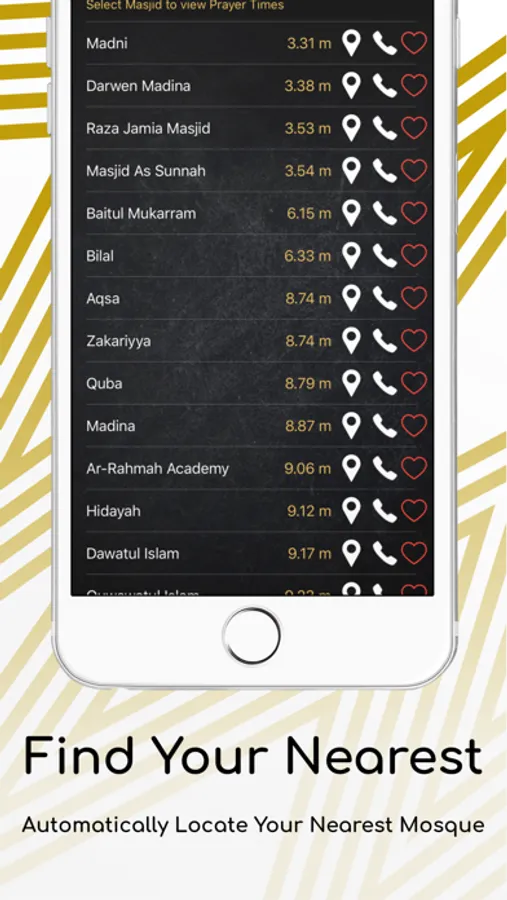 Instantly make calls to the mosque of your choice by simply selecting the telephone icon