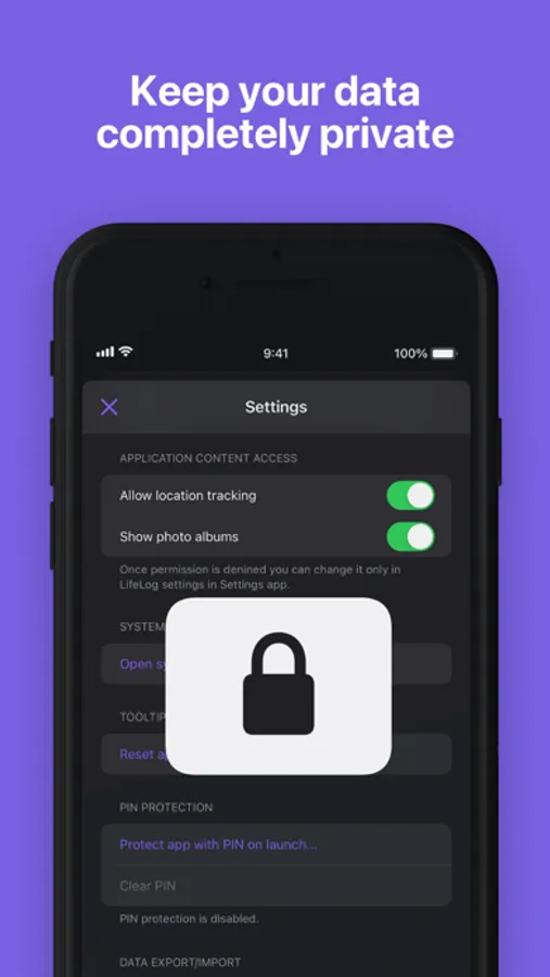 We treat the personal space of our users with care and respect and do not share data with any third-party service, other sources, and applications, including the authors of the LifeLog. Memories will belong only to you, on your device only.