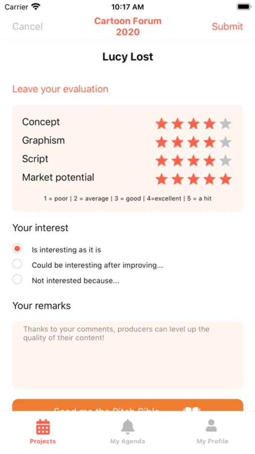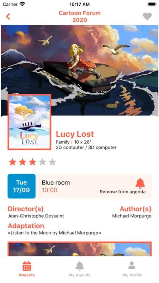 The CARTOON App is dedicated to the projects presented at the Cartoon pitching events (Forum, Movie, Springboard & 360). You will find all the information that was previously displayed in the "Projects" section of the e-catalogue.