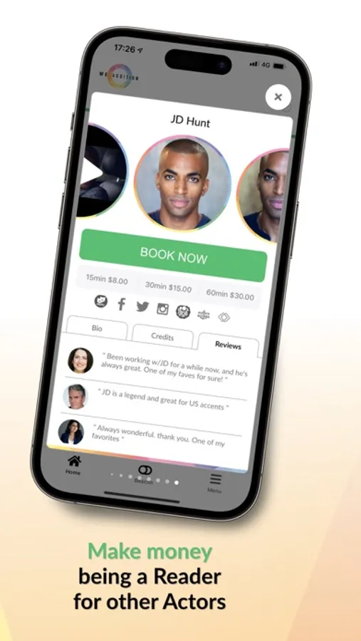 - Or be a reader and make money doing what you love. Whenever you’re available, log on and help other actors.