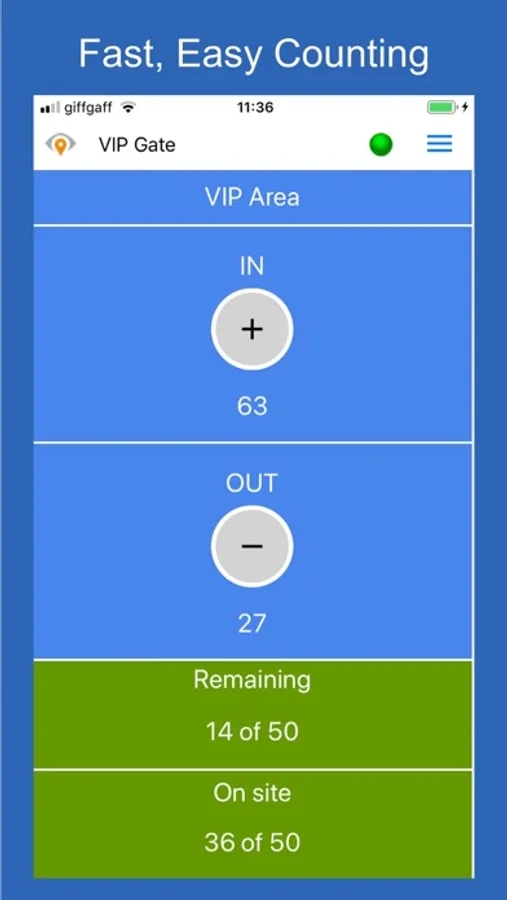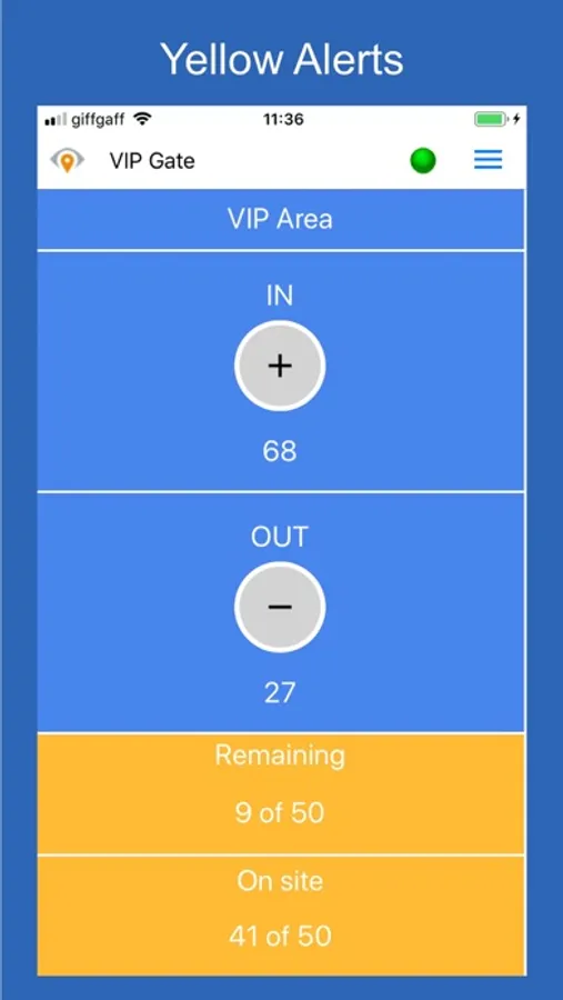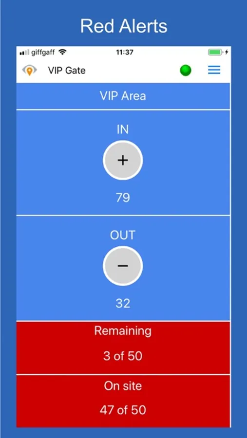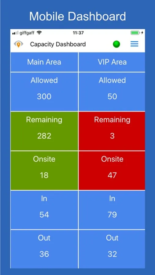 • The built-in mobile supervisor dashboard shows numbers on site and remaining capacity in each area, and raises alerts if remaining capacity drops in any zone.