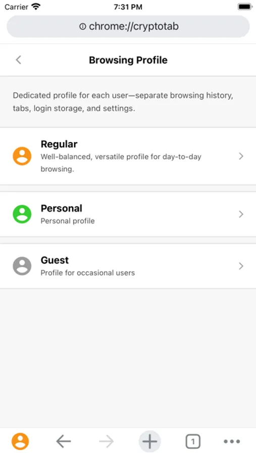 - Dedicated profile for each user — separate browsing history, tabs, login storage, and settings.