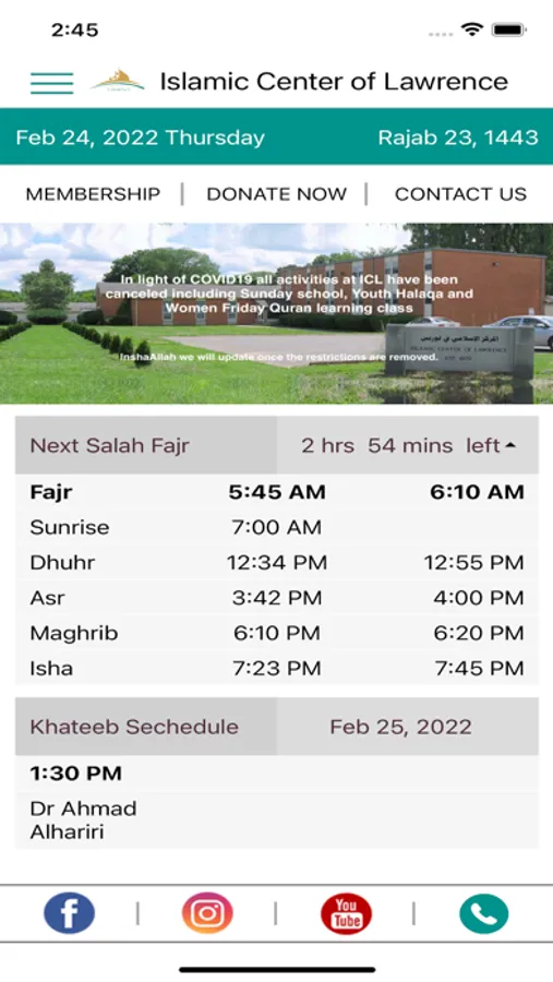 App serves as the constant communication channel between Islamic Center of Lawrence and its community members with realtime info.