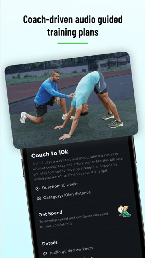 We provide GPS tracking, home workouts, running and walking training plans. We primarily create the following plans for our users: