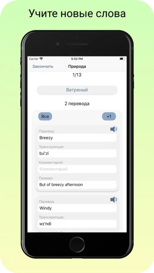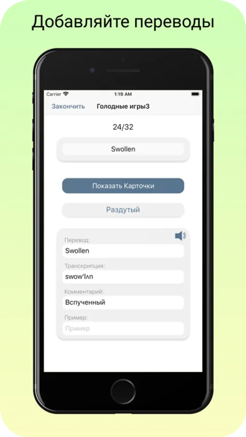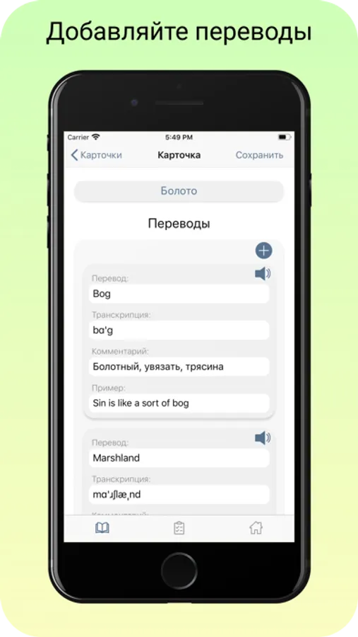 — Наполняйте их Переводами: с транскрипцией, комментарием и примером использования