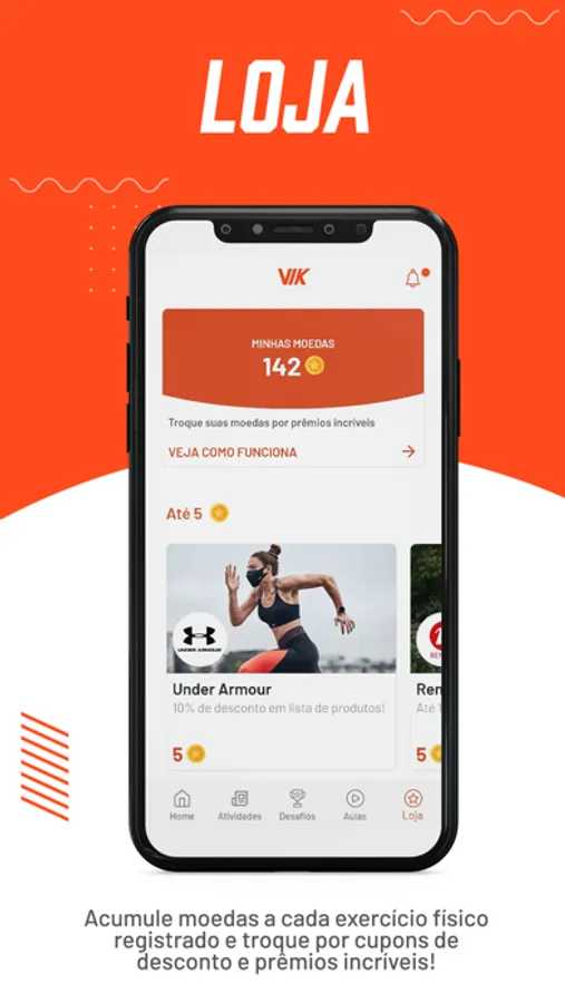 Acumule bônus a cada exercício físico registrado e troque por cupons de desconto e prêmios incríveis!