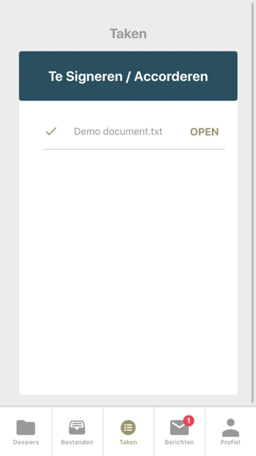 Met onze app kun kan de gebruiker makkelijk en snel documenten uploaden in de juiste map en documenten accorderen of signeren.