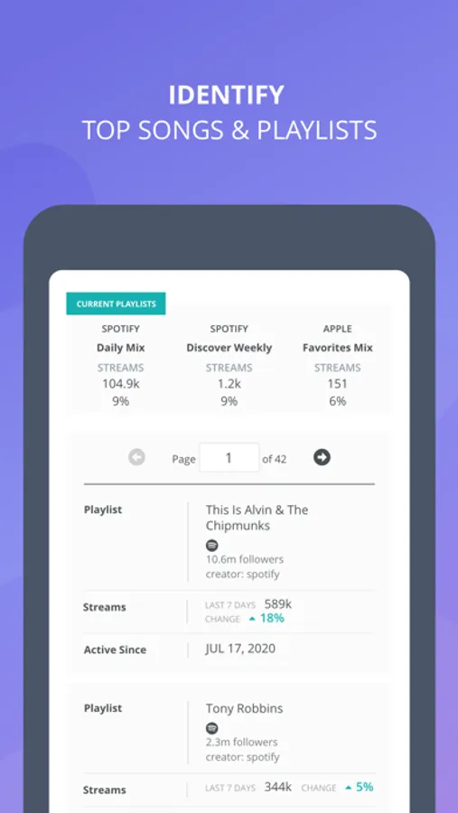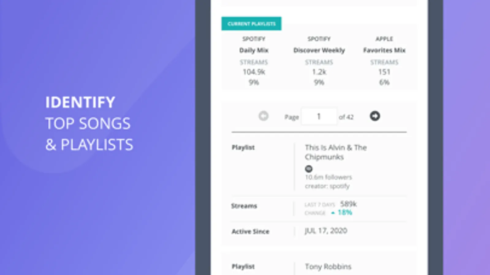 Quickly see the top performers, including top songs, playlists, and comprehensive song activity details.