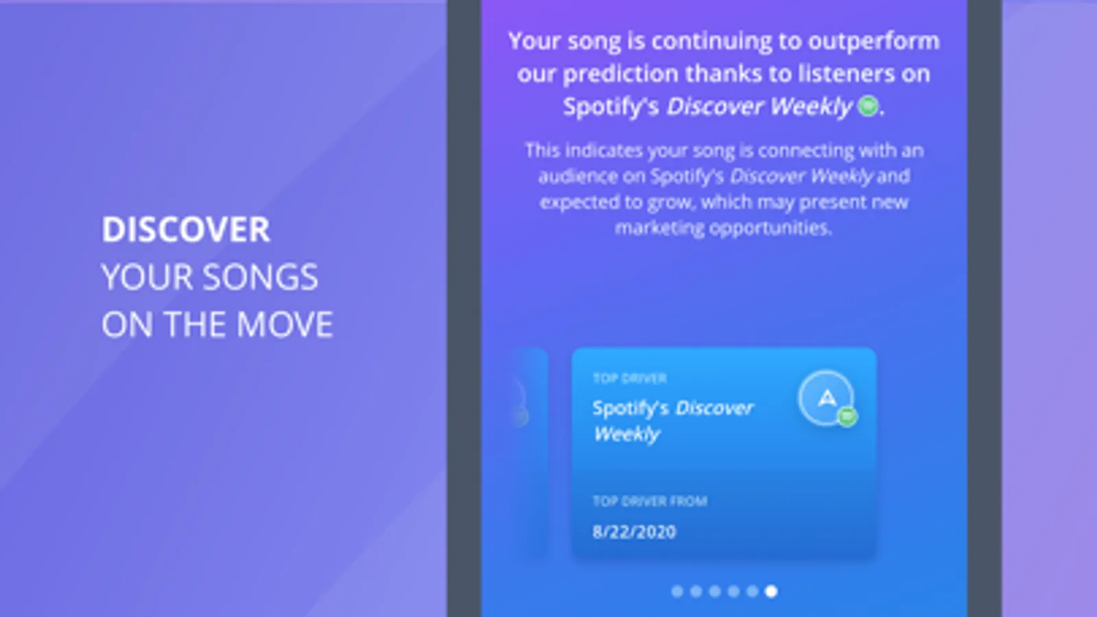 Key features include Songs on the Move to understand your song's growth and future potential, source of stream data across major streaming retailers, playlist performance, and audience insights.