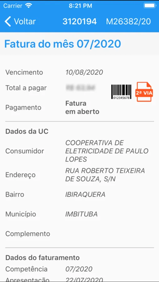 Ao acessar o aplicativo pela primeira vez, informe o número da Unidade Consumidora com digito verificador,que consta em sua conta de energia, o apelido é a forma como gostaria de ser chamado e seu preenchimento é opcional.