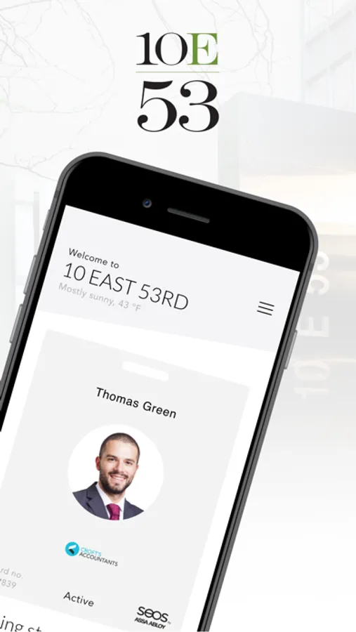 This application is intended for employees that work in 10 East 53rd Street and their visitors. Important information about the building can be found on the dashboard, which dynamically changes throughout the day. The app allows employees frictionless access into the property and will enable them to invite guests to the property as well. Additional modules are available including, amenity reservations, events, community information, etc.